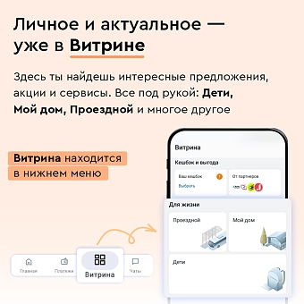 А за дополнительной выгодой заглядывайте в «Витрину» — там полезные сервисы, спецпредложения и другие приятные находки.