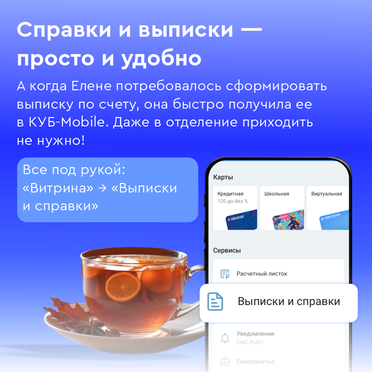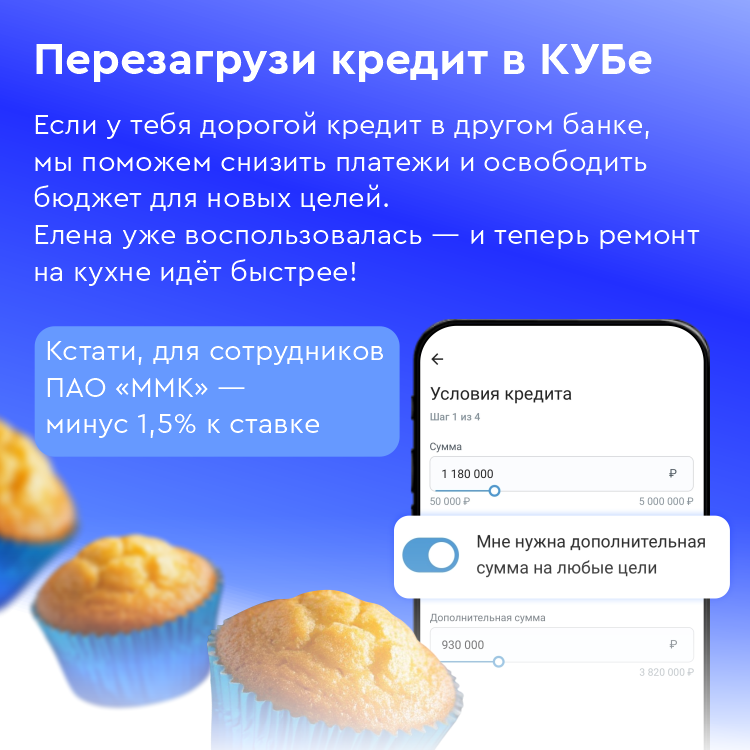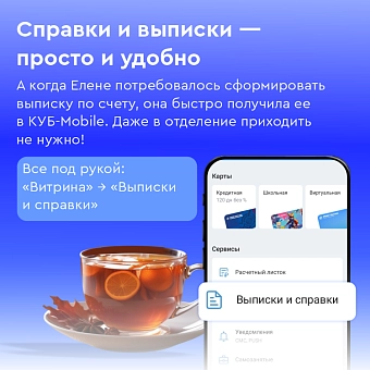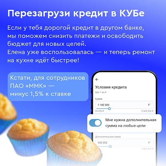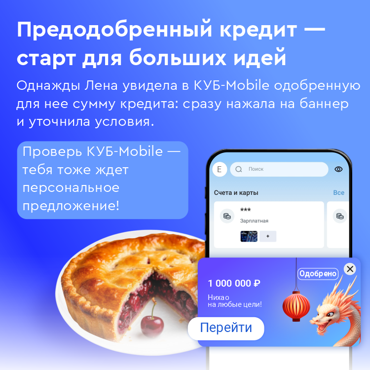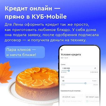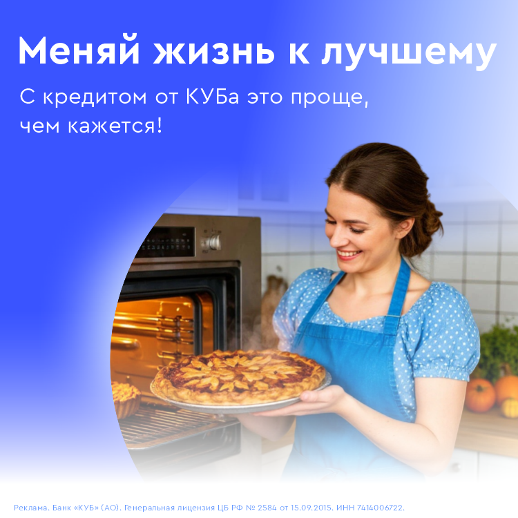 Это Елена А. — обычный бухгалтер с большой мечтой. В этом году она решилась сделать ремонт на кухне, купить новую духовку и начать вести кулинарный блог. И всё это — с помощью нашего кредита на любые цели в КУБ-Mobile.