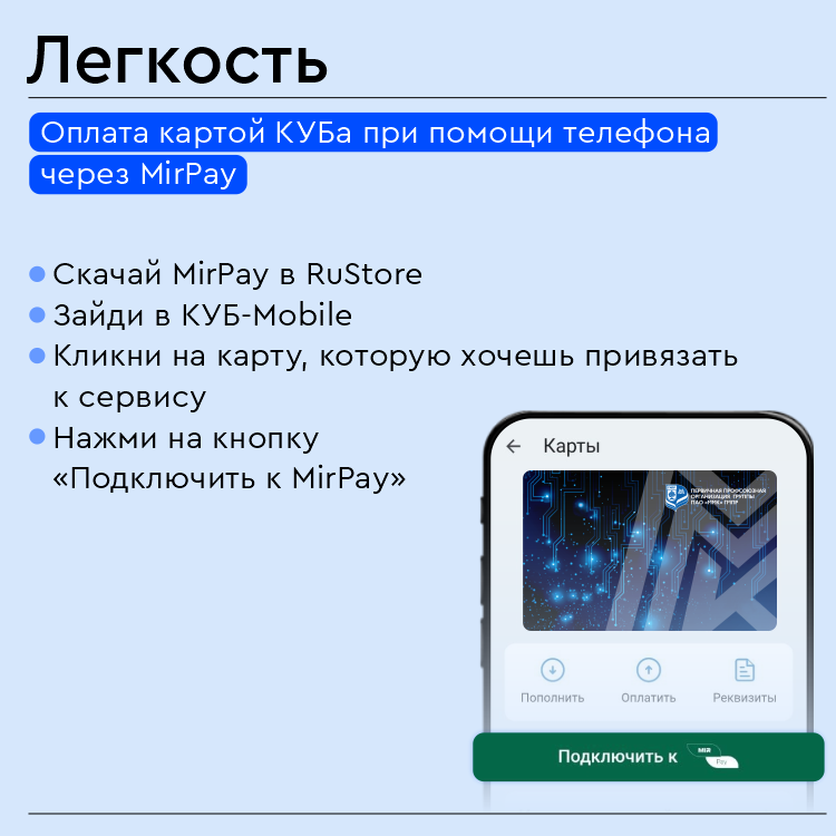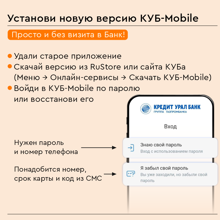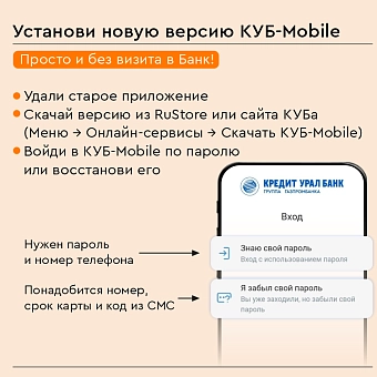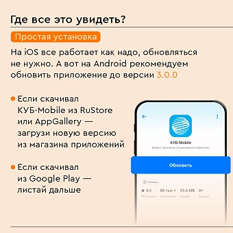 Чтобы увидеть обновления – скачайте последнюю версию КУБ-Mobile 3.0.0 на Android с помощью нашей инструкции. На iOS все функции уже доступны.