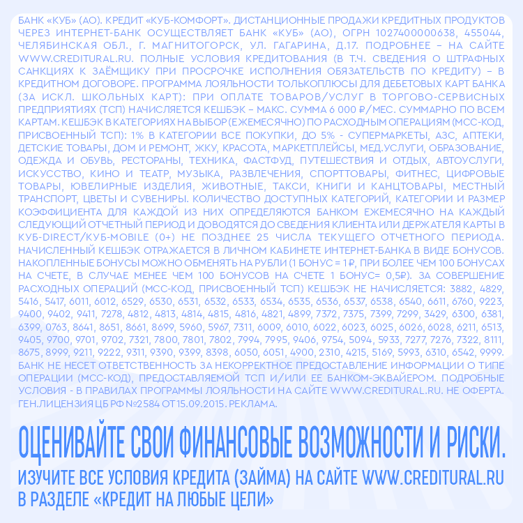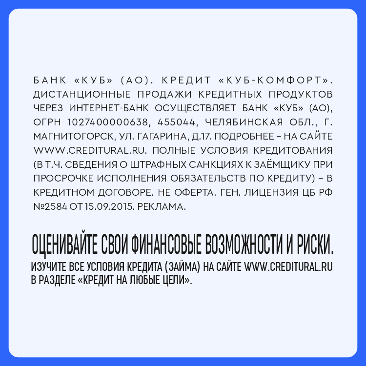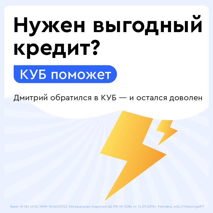 Дмитрий четко знает, что реклама кредитов обещает низкую ставку, но за яркими словами скрываются неожиданные условия. Поэтому наш герой доверяет только родному КУБу, где всё просто и без сюрпризов!