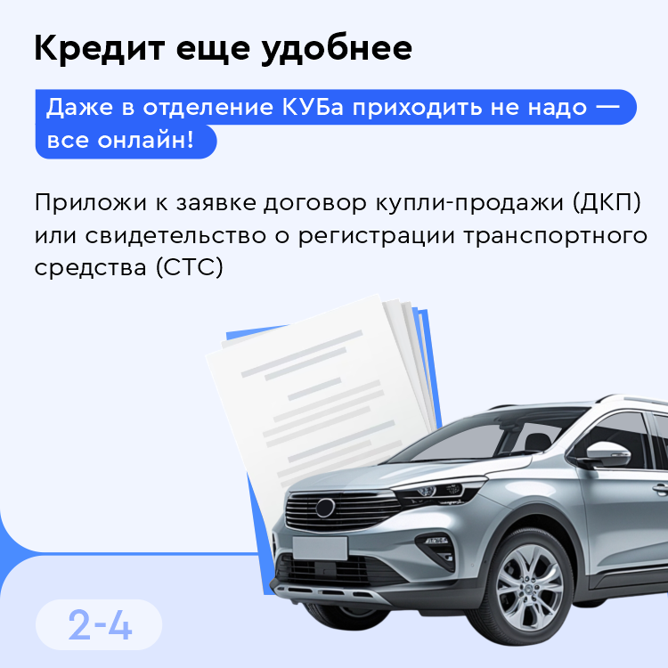 - Кредит на новое или подержанное авто
