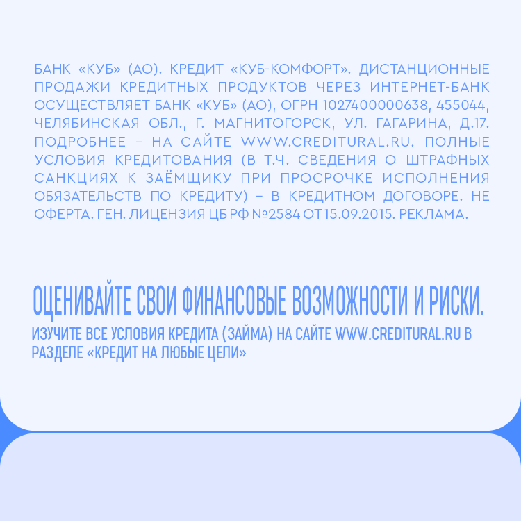 - КУБ - Ипотека+ На любые цели под залог имеющегося жилого помещения